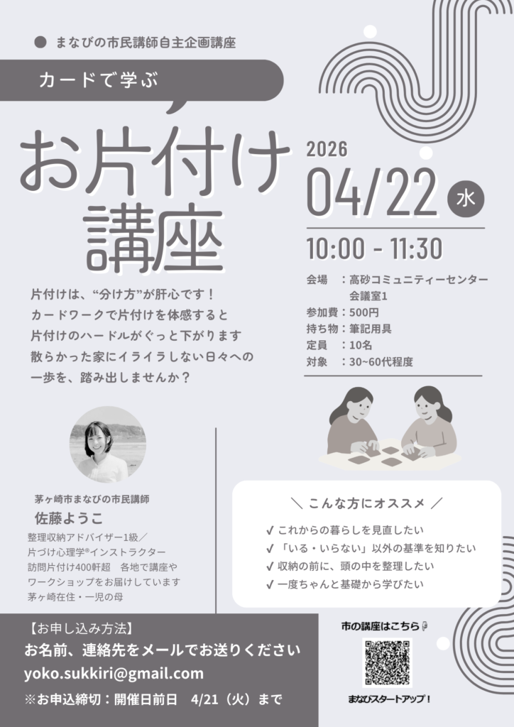 神奈川県茅ヶ崎市でカードワークを使ったお片付け講座をします◎